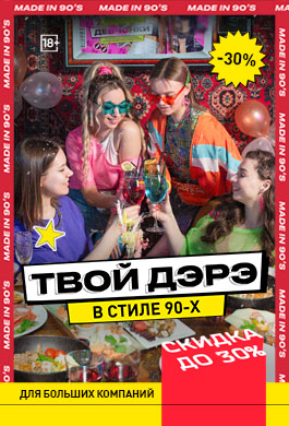 *скидка 30% на всё барное меню доступна с воскресенья по четверг, а в пятницу и субботу — 20%, не действует во время концертов и спец. мероприятий.